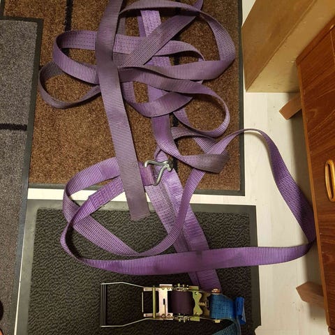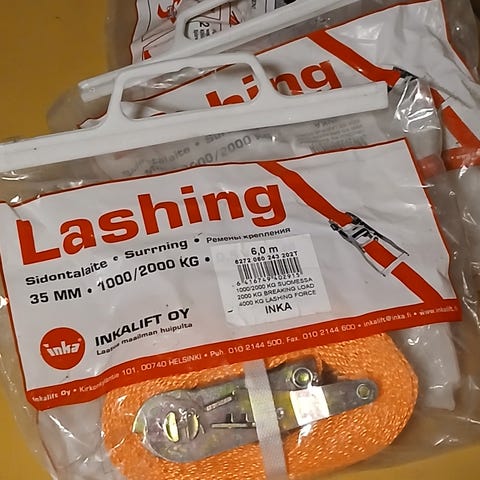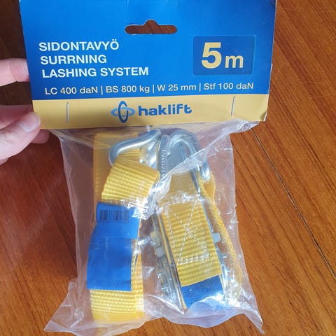 Kerran pari käytetty aikoinaan. Myydään ilman räikkää. Leveys 4.5 cm. Mieluiten nouto mutta voin myös postittaa.