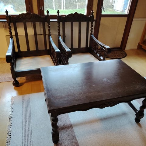 Sohvapöytä (kansi vääntynyt, jalat kunnossa)