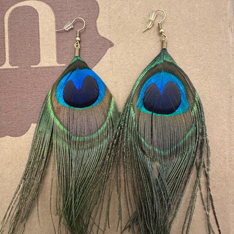 Glitterin korvakorut. Toisesta korusta on yksi koha murtunut rikki. Tämän pystyy varmasti korjaamaan.