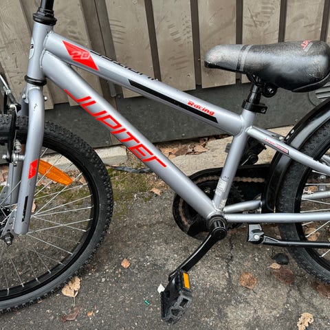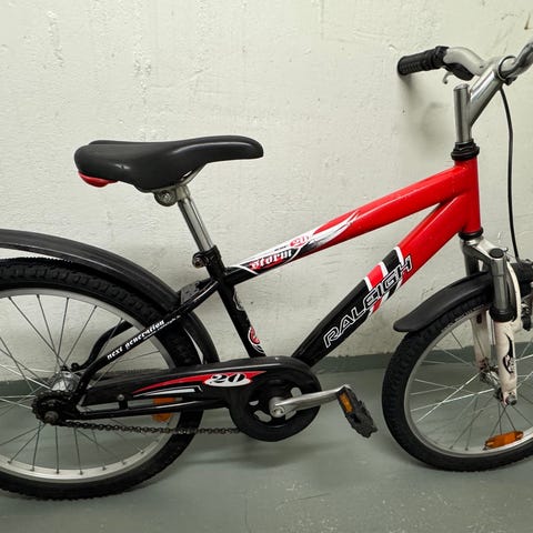 Lasten polkupyörä 20" renkailla. Rungon väri on valkoinen ja lokasuojat siniset. Pyörässä on matala runko helpompaa kyytiin nousua varten, käsijarru edessä ja jalkajarru takana. Varusteluun kuuluu takatavarateline. Soveltuu noin 20"-kokoista pyörää käyttävälle lapselle arkiajoon ja vapaa-ajan pyöräilyyn.