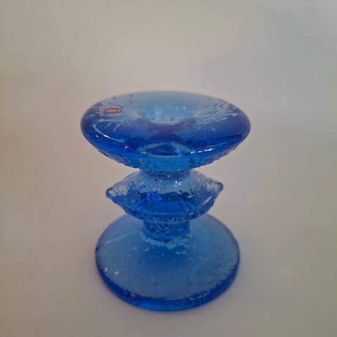 Timo Sarpanevan Iittalalle suunnittelema Festivo kynttilänjalka. Kynttilänjalassa on 4 solmua. Nimikirjaimet (T.S.) ovat pohjassa. Virheetön. Kynttilänjalan korkeus on 18 cm. Sekä halkaisija on 7,5 cm.