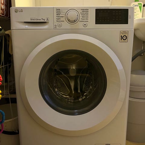 Pyykinpesukone LG Direct Drive 6kg 1200k linkous. Edestä täytettävä siisti laadukas pesukone. Syvyys 45cm mahtuu hyvin. Suoravetomoottori. Pikapesu on. Kello on. Aika lyhennys toiminto. Lopetus signaali. Monipuoliset ohjelmat. Tehokas ja hiljainen. Kannessa pieni kauneus virhe. Voin tuoda ja asentaa.