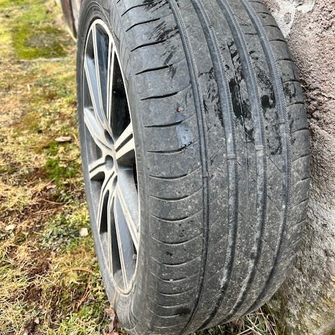 Yhdessä vanteessa on pieni jälki. Näkyy kuvissa. Olleet XC60 alla.