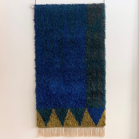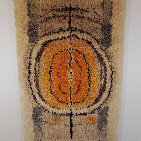 Ryijy on hyväkuntoinen. Kevyempi ja ohuempi kuin tavanomaiset ryijyt.