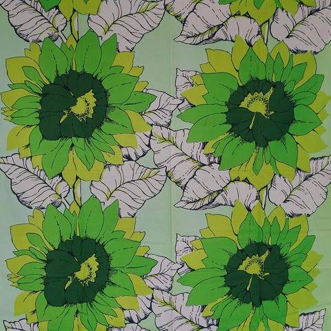 Vihreä kukkakuvioinen kappaverho 1970-luku (Finlayson)