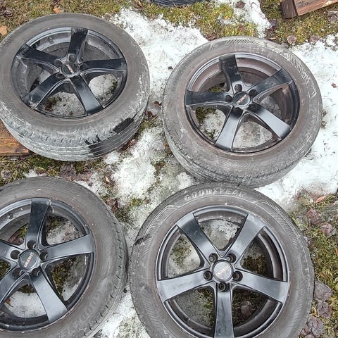 hyväkuntoiset vanteet joutilaana eteenpäin. jonkinlaiset kumit päällä pari huonompaa tais olla ja pari kohtalaista. mk4 golffissa ollut alla.