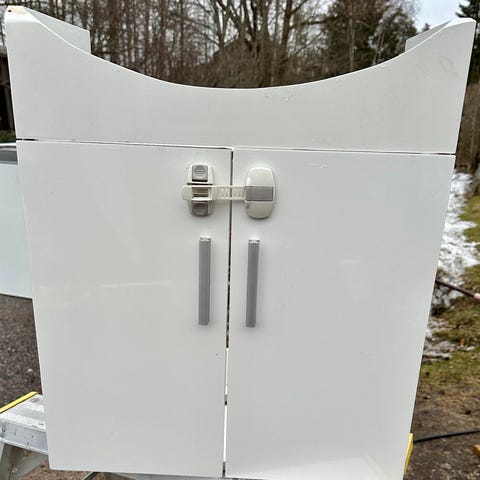 Kylpyhuoneen allaskaappi laatikoilla ja pesualtaalla, Oras hanalla .VARATTU.