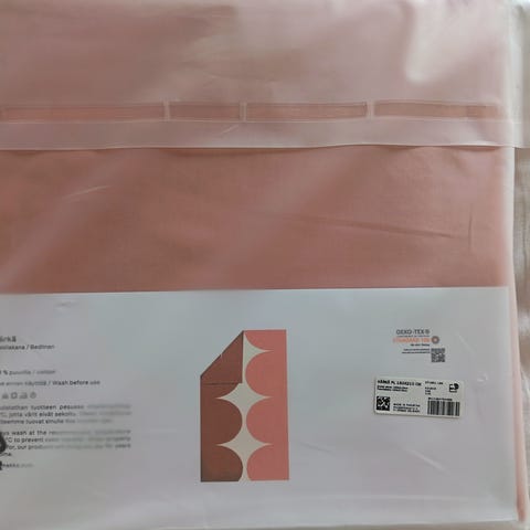 Erittäin hyväkuntoiset. Yksi pussilakana ja tyynyliina. Normaalia kokoa. Kissatalous.