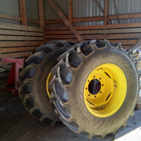 Traktorin-rengas 12,4"x28" kulunut (4-vedon-etunen) ja 24" vanhat-vanteet, voi olla "risa-renkaatkin". Ja hinta sen mukaan ???