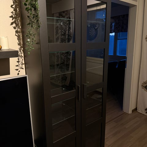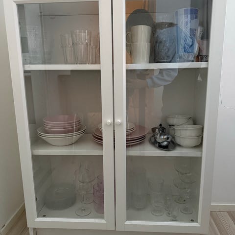 Ostan valkoisena kyseisen vitriini / kaapin ja jos kapeampi versio lasiovellq niin sekin sopii.