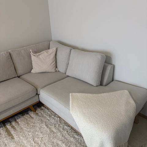 Beige kolmen istuttava sohva, joka on ollut alle vuoden käytössä ja ostettu uutteena Finlandiasta. Tuotteesta on kuitti.