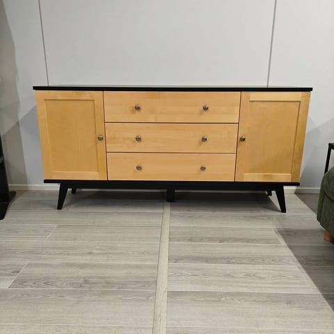 Kestävän Helsinki-koivusarjan korkeassa leveässä senkissä on paljon monipuolista säilytystilaa. Helsinki-senkki tuo myös samalla kätevää sivu- ja laskutasoa eri tiloihin. Toinen puoli senkistä on kaappitilaa ja toisella puolella oleva laatikosto auttavat pitämään tavarat siististi tallessa ja järjestyksessä.