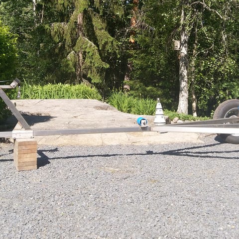 Metallinen peräkärryn tuleva venetraileri, useista osista koostuva. Materiaalina metalli. Peräkärryyn tehty traileri tarvikkeet. Mukaan tulee myös kiristys rauta joka puuttuu kuvista