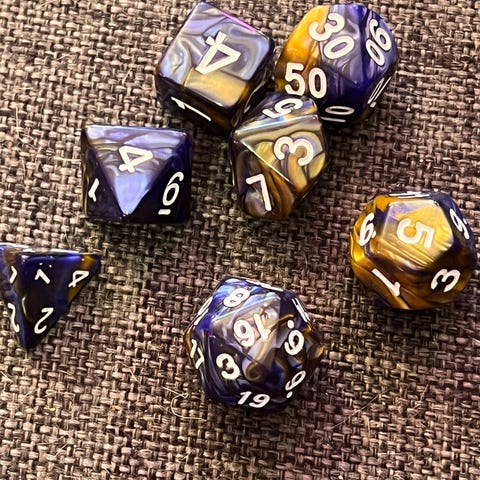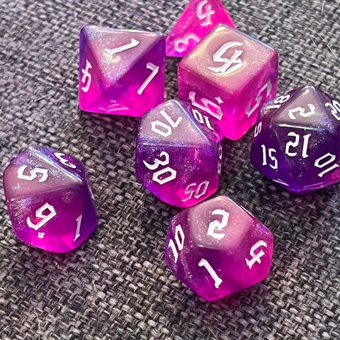 Käsintehdyt, messuilta ostetut kauniit premiumlaatuiset nopat. Vain hyllyssä esillä olleet.