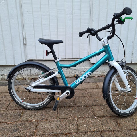 Woom 3 lasten polkupyörä, jossa 16" renkaat. Rungon väri violetti ja etuhaarukka sekä osa rungosta valkoinen. Pyörässä on käsijarrut, lokasuojat ja ketjusuoja. Soveltuu lapsille, joille 16" kokoluokan pyörä on sopiva. Rengaskoko 16".
