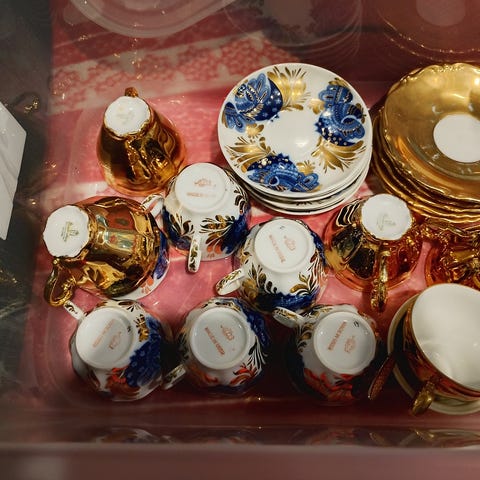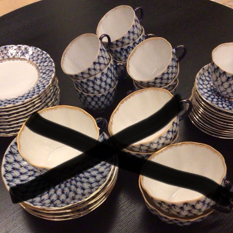 Ostetaan kuvissa näkyvän sarjan astioita, voi tarjota muutakin Dulevon astioita ja Lomonosovia