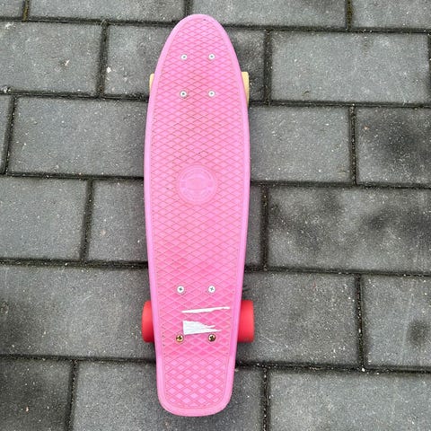 Santa Cruz skeittilauta. Laudassa on monivärinen kansigrafiikka ja musta grippiteippi. Renkaat ovat vaaleanpunaiset. Soveltuu yleiseen skeittaukseen ja rullailuun kuivilla, tasaisilla alustoilla.