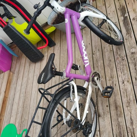 Woom lastenpyörä 20". Violetti runko. Laitan lisää kuvia kun pyörä on tullut huollosta.