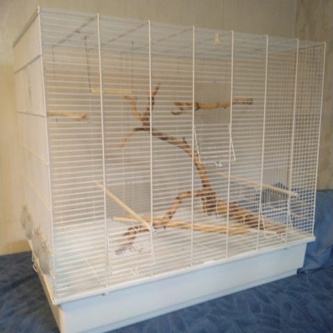 Myynnissä iso linnunhäkki. Kokonaiskorkeus 160 cm, leveys 48 cm ja syvyys 45 cm