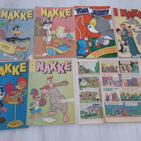 Nakke sarjakuvalehdet, useita numeroita vuosilta 1988–1992. Kuvissa näkyy mm. numeroita 32/1988, 5/1988, 46/1989 ja 32/1992. Lehdet ovat suomenkielisiä ja sisältävät värillisiä sarjakuvia. Sopivat kokoelmaan tai luettavaksi sarjakuvien ystäville. Myynti koskee kuvissa näkyvää lehtierää. good condition get it in keskusta near cittimarket joensuu