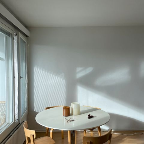 Ollut meille ihana pöytä, mutta uuteen kotiin sopii suorakulmainen paremmin, siksi vaihtoon.