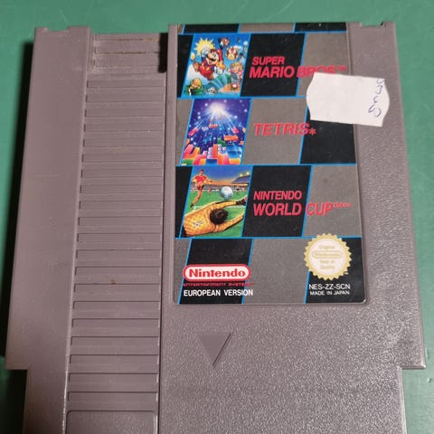 Nintendo peli jossa kolme peliä Super Mario Bros, Tetris ja Nintendo World Cup. Pelkkä peli.