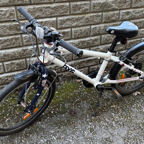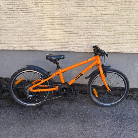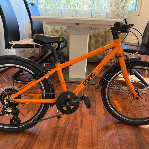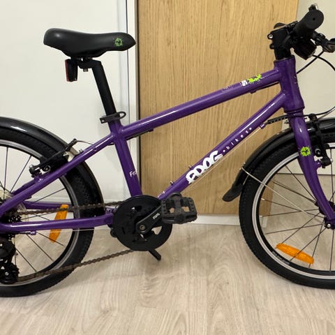 Myydään hyvässä kunnossa Frog Bikes lasten lokasuoja on halkenut , siksi on teipattu mutta ei häiritse ajamista