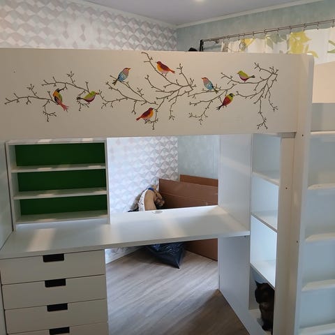 IKEA parvisänky työpöydällä ja säilytystilalla valkoinen