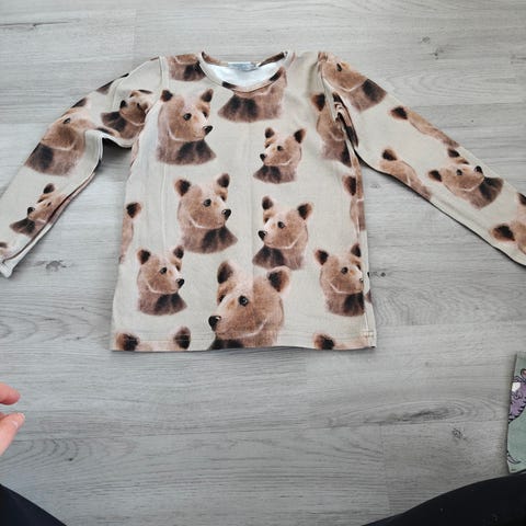 Metsola lasten paita, koko 98/104 Pitkähihainen paita, jossa vihreä pohjaväri ja kettukuosi. Materiaalina puuvilla. Unisex-malli, sopii sekä tytöille että pojille arki- ja päiväkotikäyttöön. Ehjä ja siisti. Vain nouto ja käteismaksu. Koiratalous