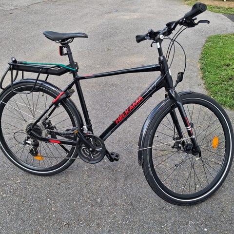 Levyjarrut (tektro) takana ja edessä. Takajarrun vaijeri vaihdettu viime kesänä. 8-vaihdetta liipasimilla (shimano). Rungossa puhelintaskullinen pieni laukku. Kuvan lukko ei kuulu kauppaan.