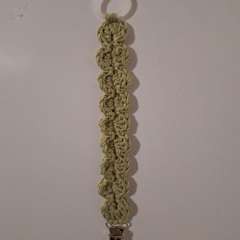 Uusi & käyttämätön tuttinauha💚. Virkattu 100% puuvillalangasta (Drops Safran, pistaasinvärinen).