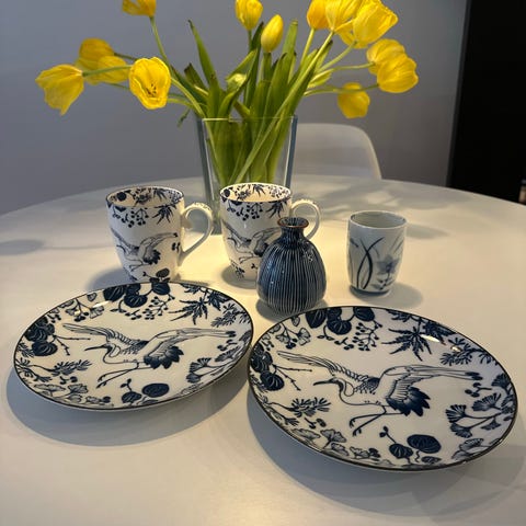 Tokyo Design Studion kaksi sinivalkoista keraamista lautasta.
