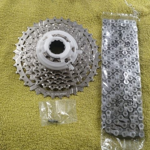 Yhden lenkin ajettu Shimanon pakka. Välitykset eivät kelvanneet kuljettajalle niin vaihdettiin isompaan ja tämä jäi käyttämättömäksi.