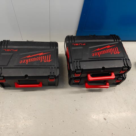 Milwaukee Fuel työkalulaukku. Kova muovinen kotelo sähkö- tai akkutyökalujen ja tarvikkeiden säilytykseen ja kuljettamiseen. Väriltään musta punaisilla yksityiskohdilla ja kantokahvalla. Soveltuu Milwaukee Fuel -sarjan työkaluille tai yleiskäyttöiseksi työkalulaukuksi. 30€ kpl tai 50€ molemmat.