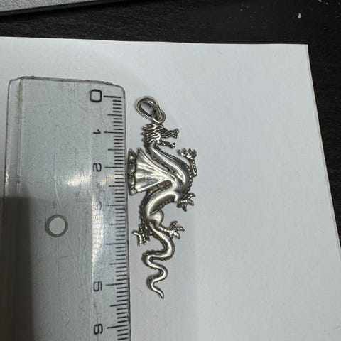Kyseinen kaulankorun hopeinen lohikäärme. 925 hopeaa. 5,5 grammaa. Ollut varastossa käyttämättömänä. Toridiilillä.