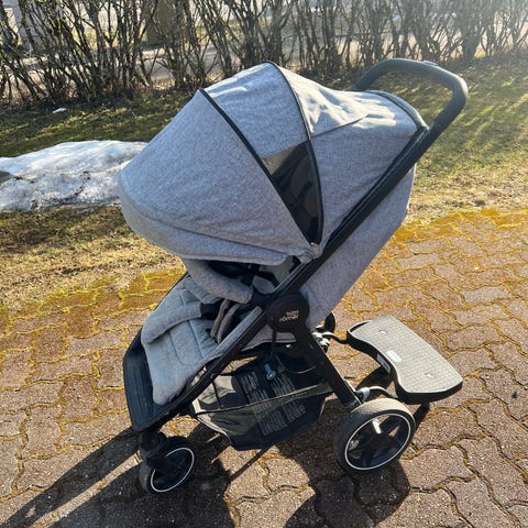 Selkänoja menee makuuasentoon. Iso kuomu suojaa hyvin auringolta (aurinkosuoja 50) ja sateelta.Jalkalukitus toimii, eikä näistä muutenkaan ole moitteen sanaa toiminnan puolelta.