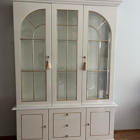 Puunvärinen vitriinikaappi, jossa yläosassa kaksi lasiovea ja useita hyllyjä esineiden säilytykseen ja esillepanoon. Alaosassa on umpiovellinen kaappiosa lisäsäilytystilaa varten. Soveltuu esimerkiksi astioiden, kirjojen tai koriste-esineiden säilyttämiseen olohuoneessa, ruokailutilassa tai työhuoneessa.