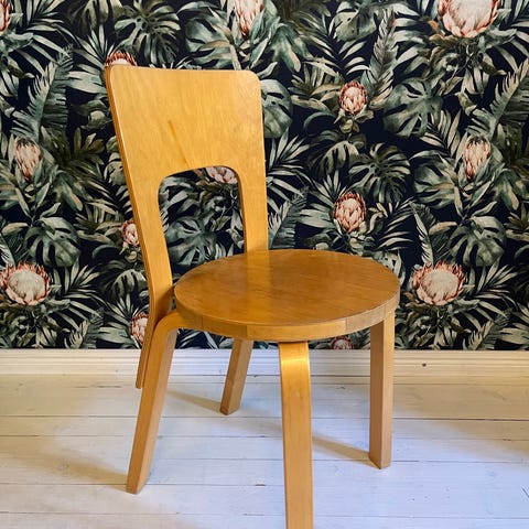 Artekin tuoli 66 koko koivu. Tuoli on ihan hyvässä käytetyssä kunnossa. Toki käytönjälkiä löytyy jonkinverran. Kolme muuta tuolia on myyty.