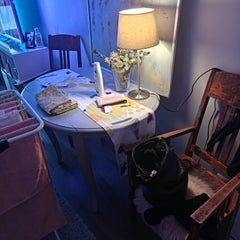 Annetaan ruokapöytä ja kuusi tuolia. Pöydässä halkeamia (katso kuvat).
