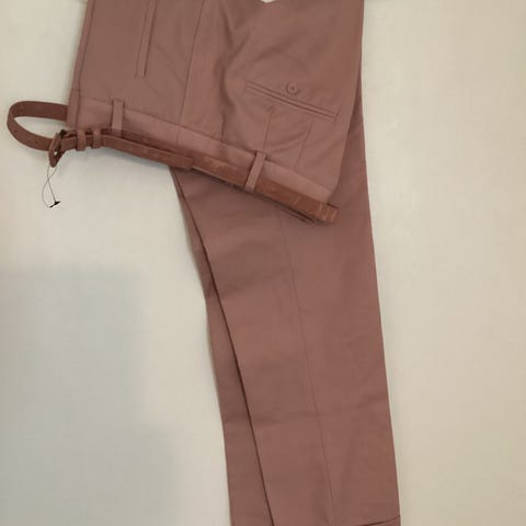 Zara housut naisille, koko 38. Väri punainen. Pitkät lahkeet ja vyötäröllä vyö. Sopivat arki- tai toimistokäyttöön sekä yhdisteltäväksi erilaisten yläosien kanssa.