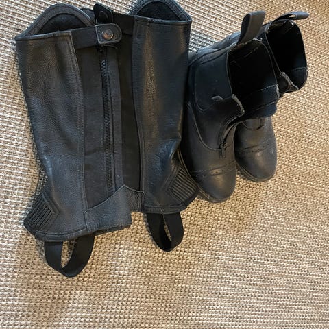 Horze lasten ratsastuskengät. Väri musta. Nilkkapituiset kengät, joissa edessä vetoketju ja sivuilla joustavat resorit pukemisen helpottamiseksi.