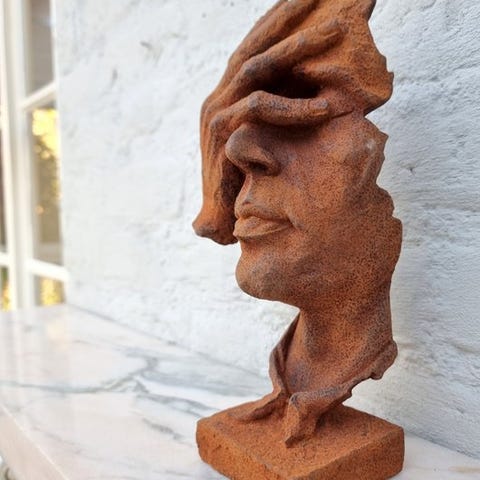 Tämä on kaunis suuri veistos miehestä, jolla on etusormensa suun edessä. Hän pyytää hiljaisuutta. Erittäin abstrakti. Valmistettu polystoneista (keramiikan ja hartsin sekoitus) ja sitä voidaan sijoittaa sekä sisälle että ulos. Mitat ovat seuraavat:Korkeus: 78 cmLeveys: 30 cmKaikki tuotteemme pakataan huolellisesti ja lähetetään vakuutuksella.