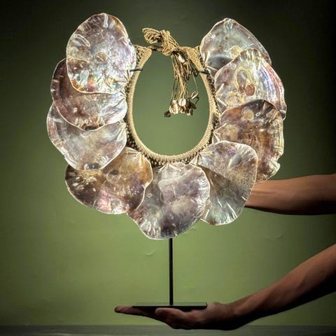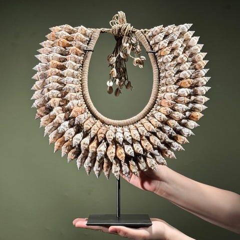 Kaunis kaulakoru, tehty mitre-kuorista, perinteisesti Iatml-heimolta Keski-Sepikiltä, Papu Uusi-Guinea.Noin mitat, mukaan lukien jalusta:Korkeus: 40 cmLeveys: 32 cm> MAINITTU PAINO SISÄLTÄÄ JALUSTAN JA PAKKAUSMATERIAALINTOIMITUS- Tavara lähetetään seurantanumeron kanssa DHL Parcelin, DPD:n tai PostNL:n kautta. Seuranta päivittyy Catawiki-kohteeseesi heti kun paketti on jätetty.- Tarkista säännöllisesti välttääksesi palautuksen meille; tällöin ostaja vastaa toisen lähetyksen kustannuksista.- Seurannan osoitteessa Espanja ja Portugali käytä tätä linkkiä ja lisää Catawiki-kohteestasi saamasi seurantanumerohttps://clientesparcel.dhl.es/LiveTracking/HomeEMME YHDISTÄ TOIMITUKSIA!!!Jos sinulla on kysyttävää paketistasi, ota meihin yhteyttä Catawiki-viestipalvelun kautta. Yritämme vastata 3 työpäivän kuluessa.