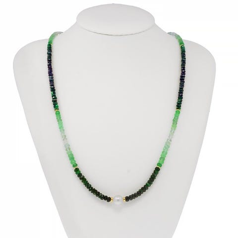 Kaulakoru riipuksella - 18 kt. Keltakulta Helmi - Jalokivisekoitus - Kaulakoru