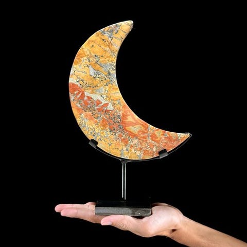 Kaunis, kiillotettu puolikuuinen malmilan jasperista tehty kivi räätälöidyllä jalustalla.Maligano jasper on tietty jasperin tyyppi, jota löytyy Indonesiasta ja joka muodostuu muinaisissa vulkaanisissa kuumien lähteiden alueilla. Maligano tunnetaan kontrastivisista lämpimistä sävyistä sinivalkoisiin ja harmaisiin, sekä upeista breksiatoista tai henkivistä kuvioista sekä sen hauskoista dendriittisistä kuvioista, joiden ansiosta kivi usein näyttää jokin riverin maisemaa pienine pensaineen sen varrella tirisevän puron äärellä.MITTAISUT, mukaan lukien jalustaKorkeus: 28,9 cmLeveys: 17,5 cmVAROITUKSET:> Huomaa, että kuvat on otettu pimeässä studiolla, värit saattavat vaihdella ympäristön mukaan.> MAINITTU PAINO SISÄLTÄÄ PAKKAUSMATERIAALIN.TOIMITUS- Tuote lähetetään seurantakoodin kera DHL Parcelin, DPD:n tai postNl:n kautta. Seuranta päivitetään Catawiki-aani, kun lähetyksesi on jätetty postiin.- Tarkista säännöllisesti, ettei pakettisi palaisi meille; tällöin ostaja vastaa toisen lähetyksen toimittamisesta aiheutuvista kuluista.- Espaniaan ja Portugaliin tapahtuvaa seurattavuutta varten käytä tätä linkkiä ja lisää Catawiki-luotollesi liittyvä seurantanumerohttps://clientesparcel.dhl.es/LiveTracking/HomeME EMME YHDISTÄ TOIMITUKSIA!!!Jos sinulla on kysyttävää paketistasi, ole hyvä ja ota meihin yhteyttä Catawiki-viestipalvelun kautta. Yritämme vastata kolmen työpäivän kuluessa.