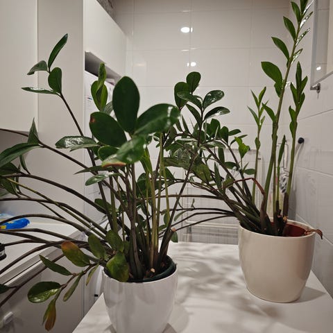 Kauniin tumma, lähes musta Palmuvehka Raven. Pistokkaat ovat olleet juurtumassa viime syyskuusta. Vielä ei näy uutta kasvua, mutta hyvin ovat mukuloita tehneet ja juurtuneet.