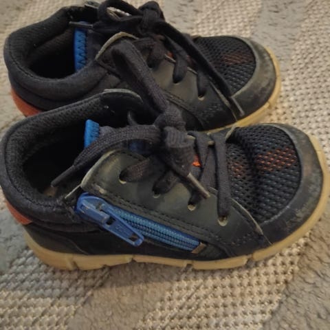 Nahkaa ja mokkaa päällä olevat kengät. Hyvässäkunnossa kunnossa. Ihan vähän pientä haalistuma kärjissä,joka ei näy ja kenkiin osuu lapsilla maahan kärjet.