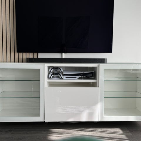Myydään erittäin hyvässä kunnossa oleva ikea Bestå säilytyskokonaisuus. Päällä lasikansi. Korkeakiilto valkoinen.