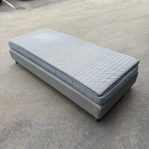 Siistikuntoinen ja käytännöllinen yhden hengen sänky. Tyylikäs harmaa väri sopii helposti eri sisustuksiin.