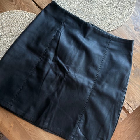 Amisu keinonahkahame, koko 42. Väri musta ja materiaali tekonahkaa. Edessä suuret paikkataskut ja nappi–vetoketjukiinnitys. Takana halkio liikkumisen helpottamiseksi. Sopii naisten vaatekokoon 42 ja käytettäväksi esimerkiksi arki- tai juhlapukeutumisessa yhdistettynä eri yläosiin.